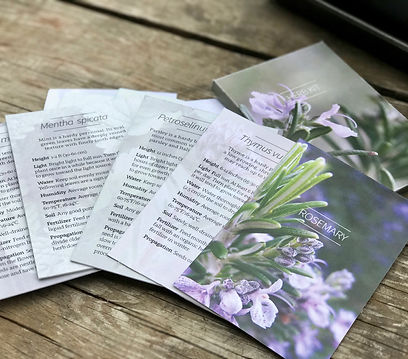 Inside this Herb Kit are 5 seed packets and cards that belong to the corresponding packet. The cards rely heavily on photography for the front of the card and type for the back. The back of each herb card contains corresponding information on the plant.